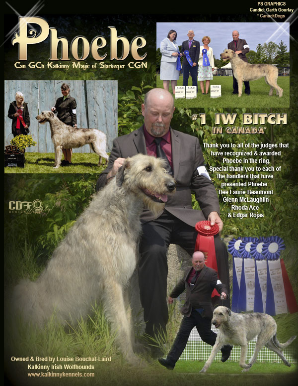 After only a few months of showing, Phoebe placed 4th in the total number of show points earned in 2015 by an Irish Wolfhound in Canada.
